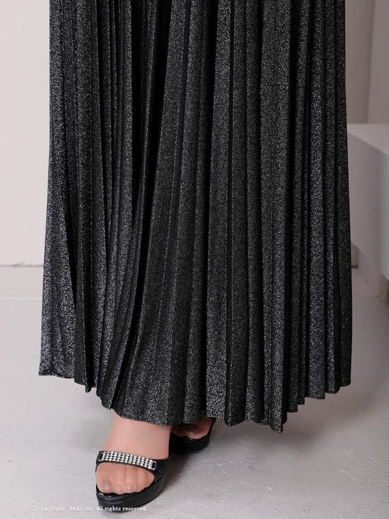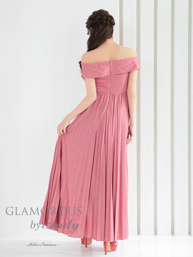 4. [AndyGLAMOROUS/アンディグラマラス] 高級 バースデー オフショルダー タック シンプル ラメ バストカット プリーツ Aラインロングドレス