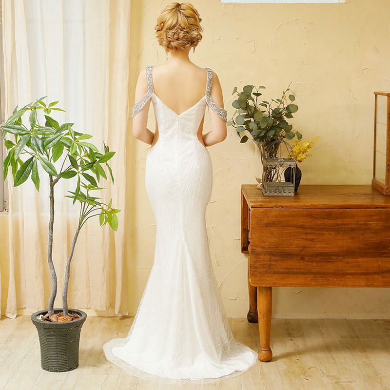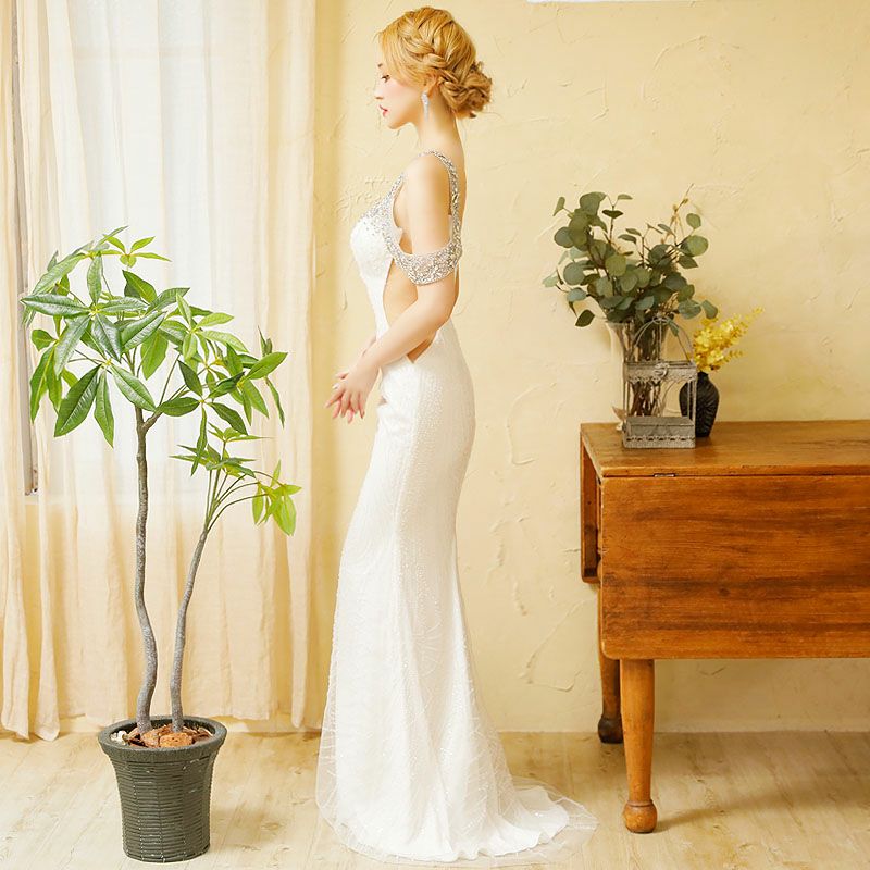 4. [Angel-RPREMIUM/エンジェルアールプレミアム] 高級 バースデー肩出し 二の腕カバービジューマーメイドタイトロングドレス
