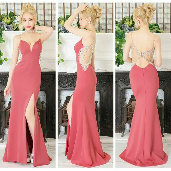 背中で魅せる☆ [Angel-R/エンジェルアール] 高級バックチェーンパールビジューキャミソールくびれタイトロングドレス