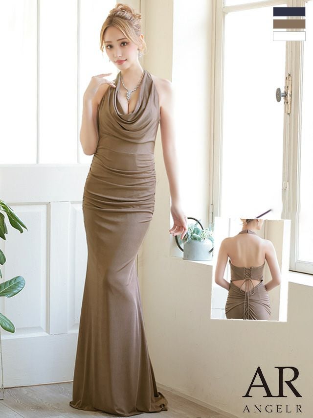 3. [Angel-R/エンジェルアール] 高級 バースデードレープホルターネックバックスタイルギャザーマーメイドタイトロングドレス