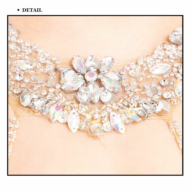 4. [Angel-R/エンジェルアール] 高級 ビジューホルターネック フラワー刺繍 くびれ バストシースルー 谷間魅せ タイトロングドレス