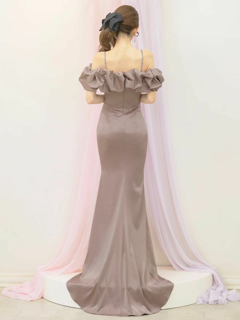 4. [Angel-R/エンジェルアール] 高級 バースデー オフショルダー 胸元フリル チャーム バストカット 谷間魅せ マーメイドロングドレス