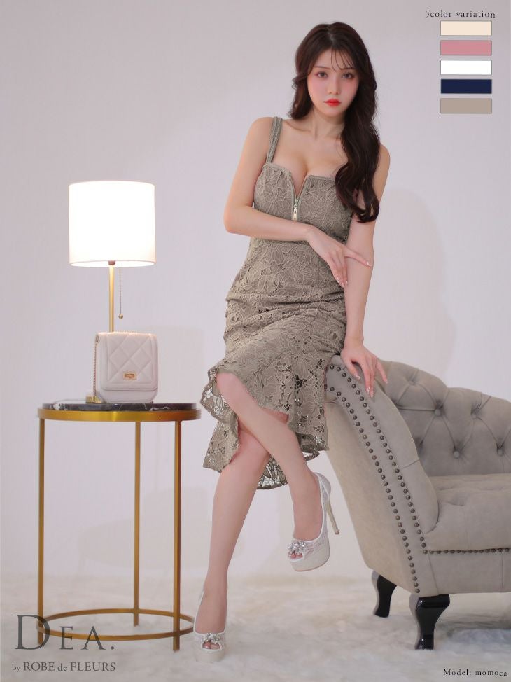 同伴やお食事会にもおすすめ☆ SALE [DEA.byROBEdeFLEURS/ディアバイローブドフルール] 高級 ケミカルレース ジップ フリルマーメイド キャミソール 膝丈ドレス