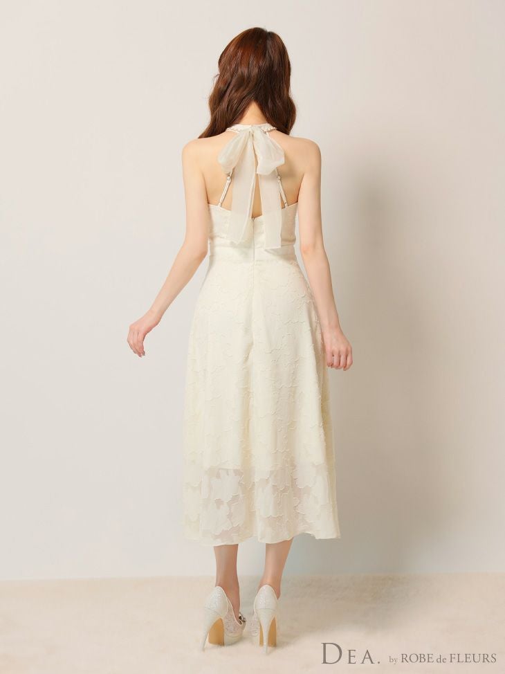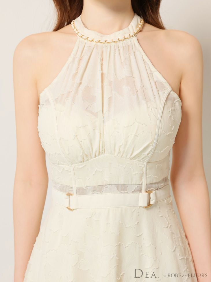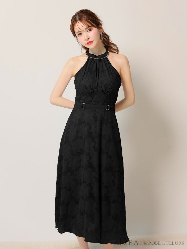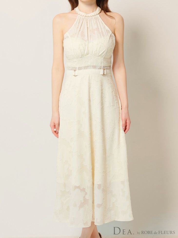 6. [DEA.byROBEdeFLEURS/ディアバイローブドフルール] 高級ホルターネックウエストベルトレースシンプルAラインロングドレス