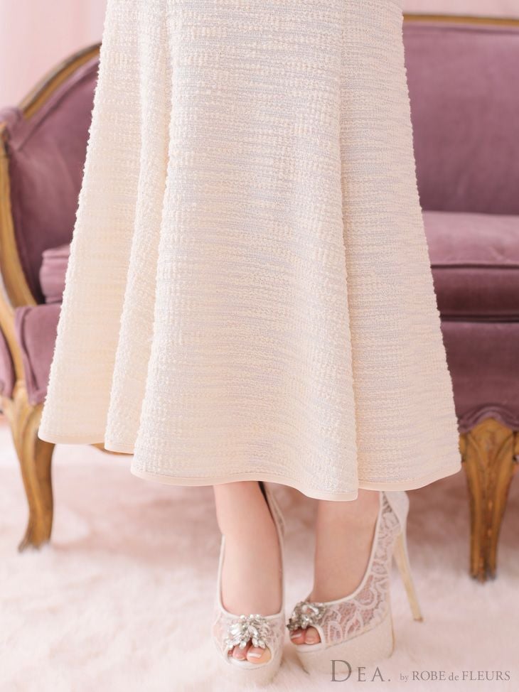 ふわふわニットが大人ガーリー☆ [DEA.byROBEdeFLEURS/ディアバイローブドフルール] 高級 リボン キャミソール フロントジップ ニットツイード マーメイド 膝丈ドレス