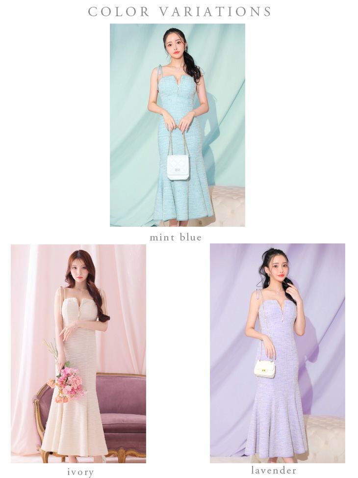 4. [DEA.byROBEdeFLEURS/ディアバイローブドフルール] 高級 リボン キャミソール フロントジップ ニットツイード マーメイド 膝丈ドレス