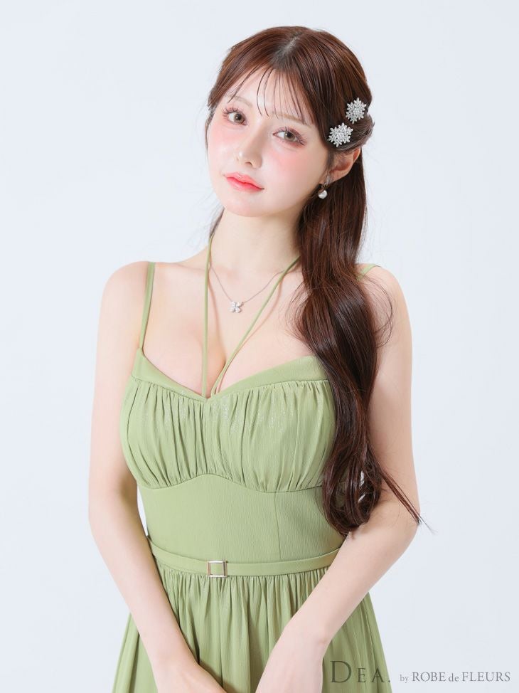 キャバドレス ロングドレス DEA.byROBEdeFLEURS ディアバイローブドフルール 高級ホルターネックリボンキャミソールウエストベルトラメシフォンAラインロングドレス
