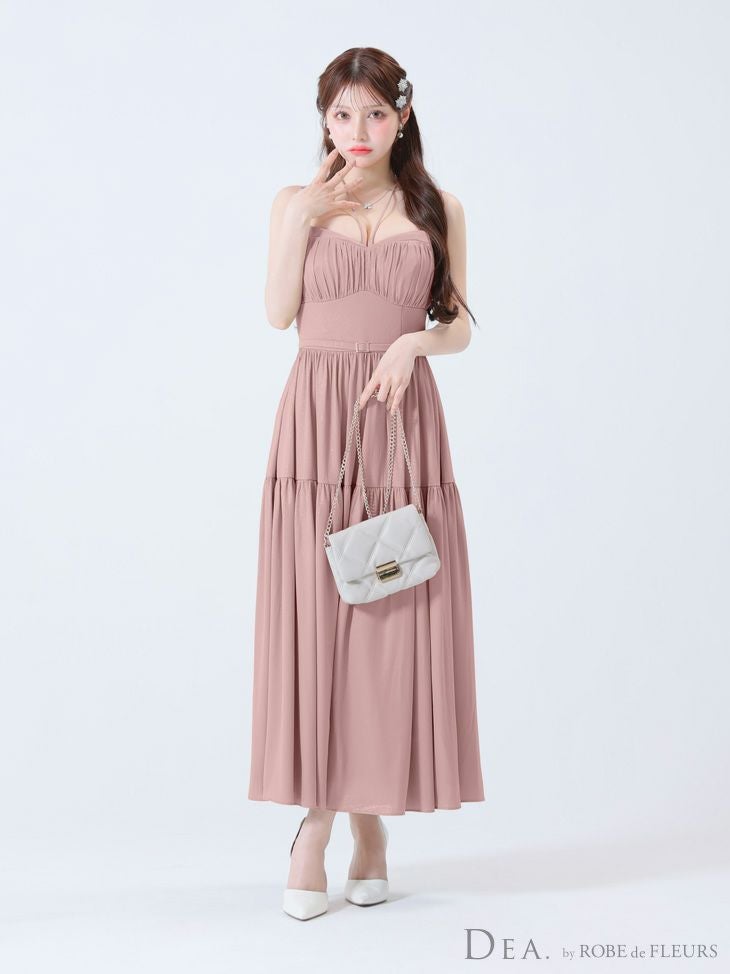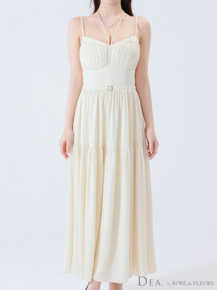 4. [DEA.byROBEdeFLEURS/ディアバイローブドフルール] 高級ホルターネックリボンキャミソールウエストベルトラメシフォンAラインロングドレス