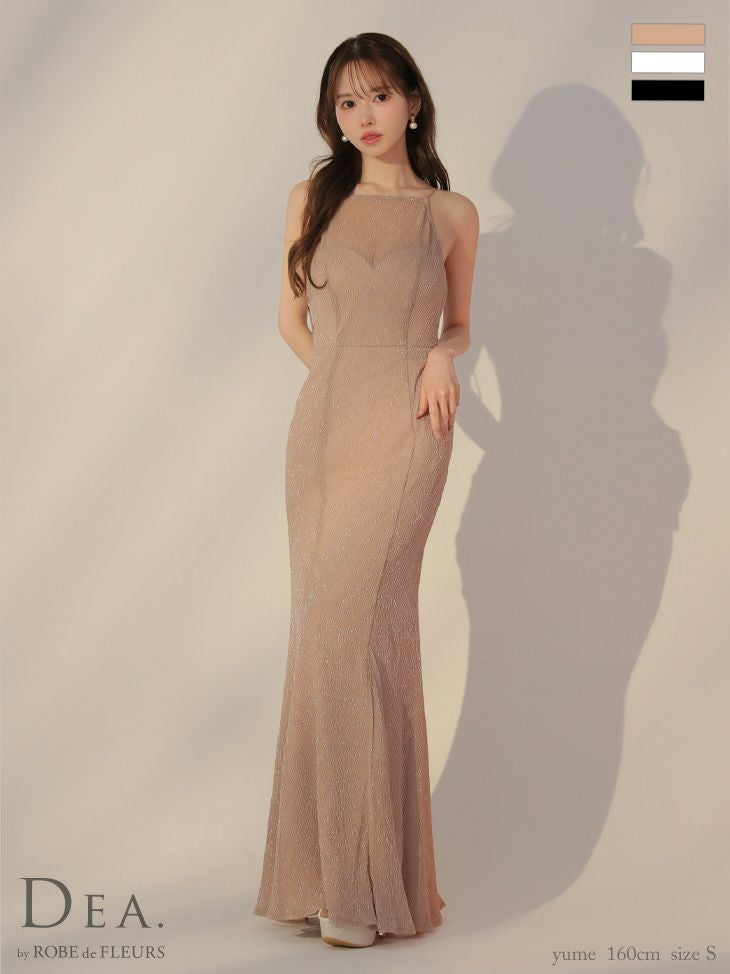 どこから見ても美しいシルエットに♡ [DEA.byROBEdeFLEURS/ディアバイローブドフルール] 高級 キャミソール ラメニット バストシースルー 背中魅せ 谷間魅せ タイトロングドレス