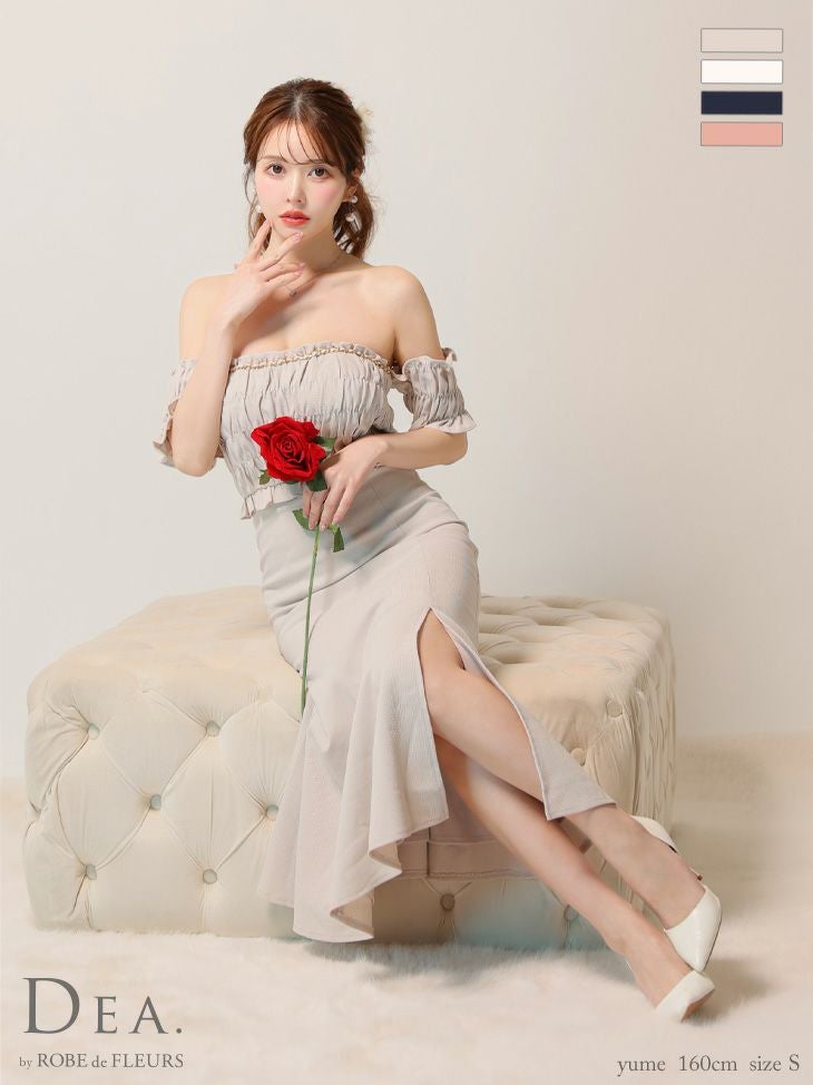 キャバドレス ロングドレス DEA.byROBEdeFLEURS ディアバイローブドフルール 高級オフショルダーフロントチェーンラメツイルギャザースリットタイトロングドレス