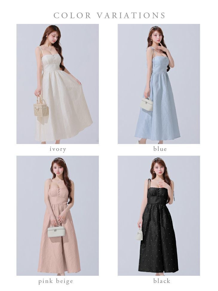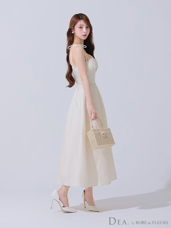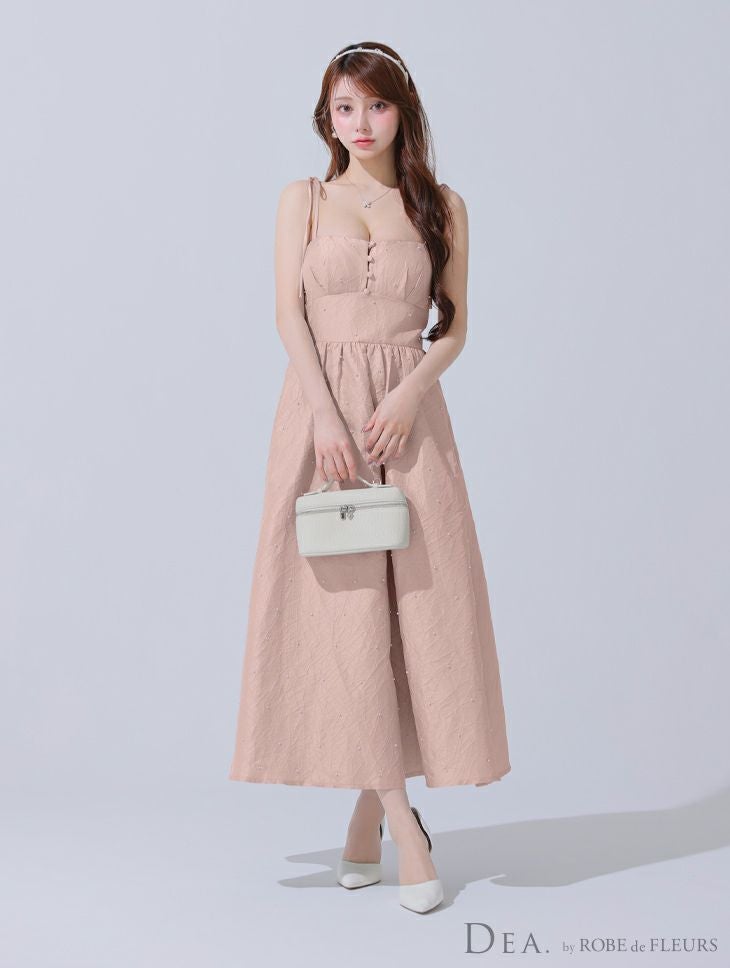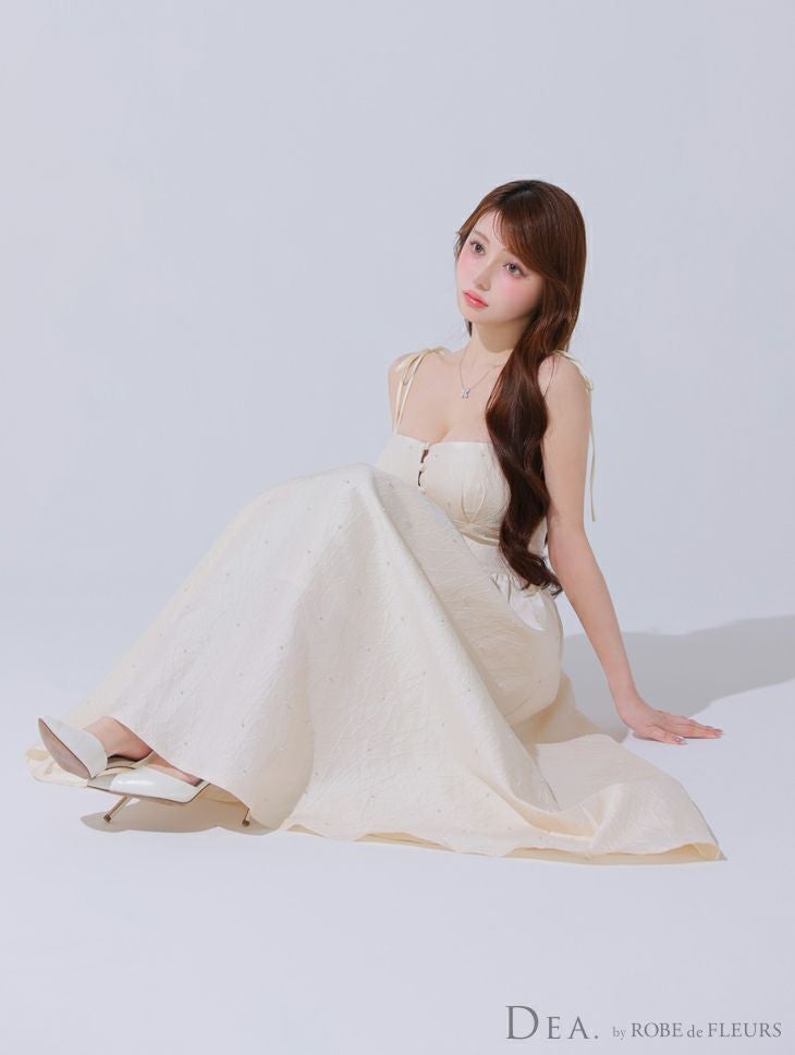 清楚な可愛さを纏う♡ [DEA.byROBEdeFLEURS/ディアバイローブドフルール] 高級 キャミソール 胸元パール ジャガード サテン Aラインロングドレス