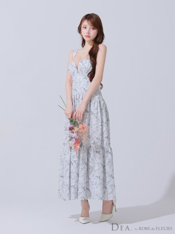 ふわっと広がるスカートが可愛い♡ [DEA.byROBEdeFLEURS/ディアバイローブドフルール] 高級 ブランド ワンピース Aラインロングドレス キャミソール ジップ 花柄