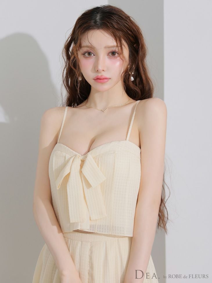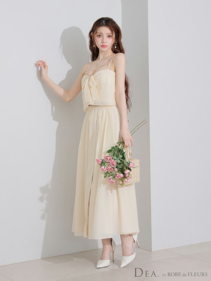 洗練されたフェミニン女性に♡ [DEA.byROBEdeFLEURS/ディアバイローブドフルール] 高級 キャミソール 胸元リボン セットアップ スリット Aラインロングドレス