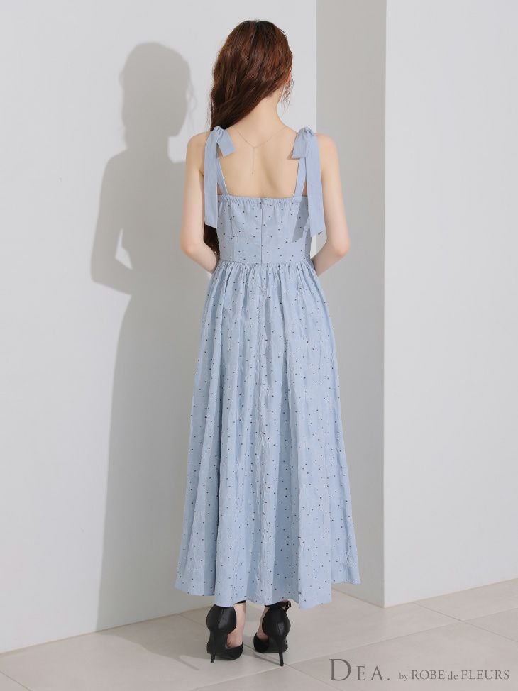 4. [DEA.byROBEdeFLEURS/ディアバイローブドフルール] 高級 ブランド ワンピース Aラインロングドレス キャミソール ドット柄 ジップ ショルダーリボン