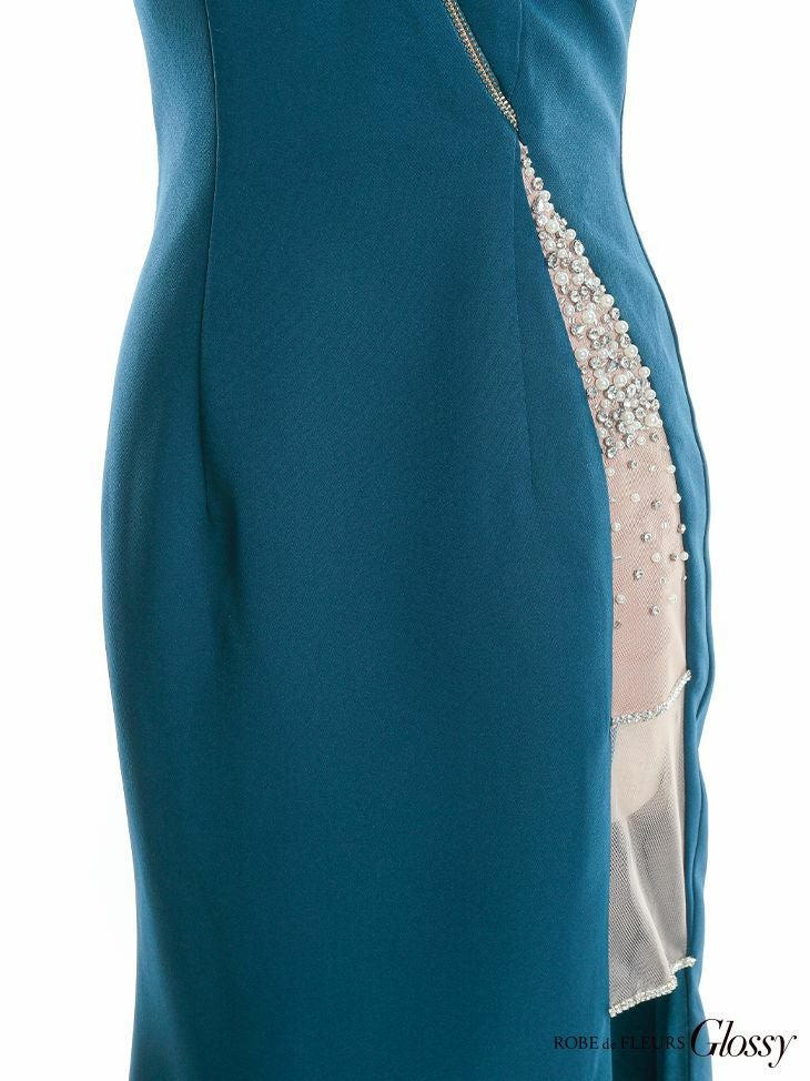 5. [ROBEdeFLEURSGlossy/ローブドフルールグロッシー] 高級フロントジップビジューワンショルダータイトロングドレス
