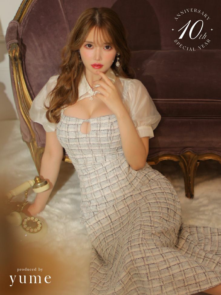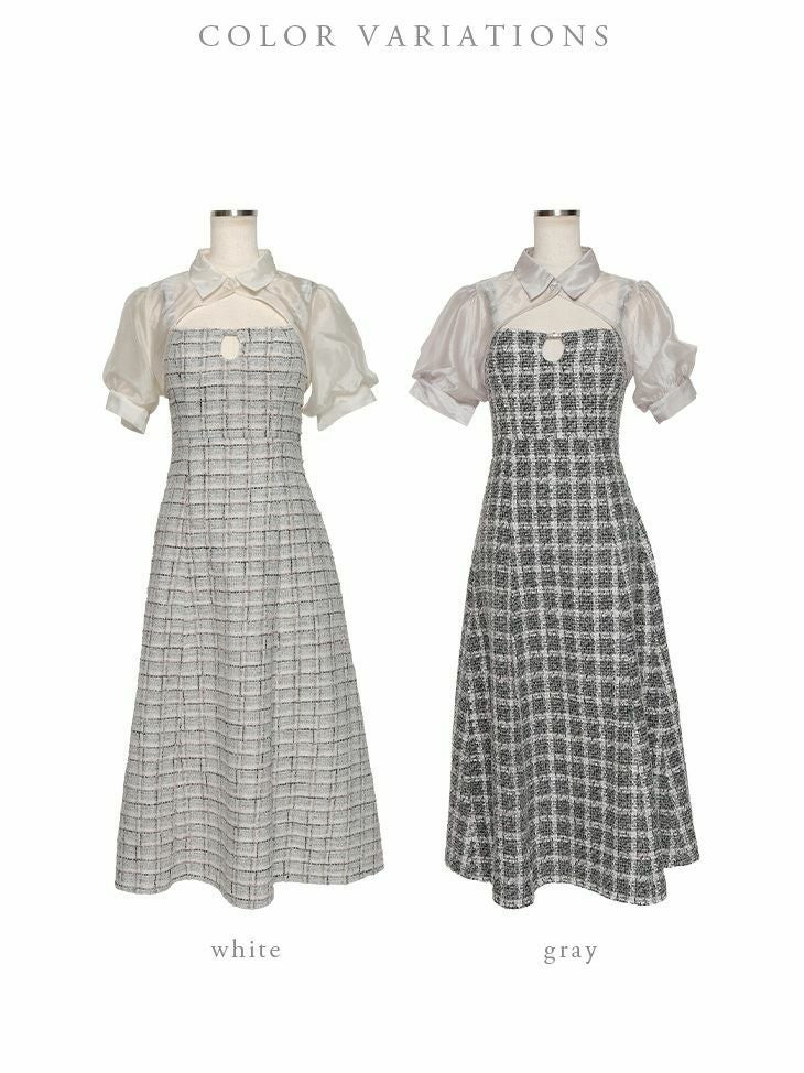 トップスは有無2wayで着れる☆ SALE [ROBEdeFLEURS/ローブドフルール] 高級 ツイード 襟付き シースルー 半袖 2Way トップス 膝丈ドレス