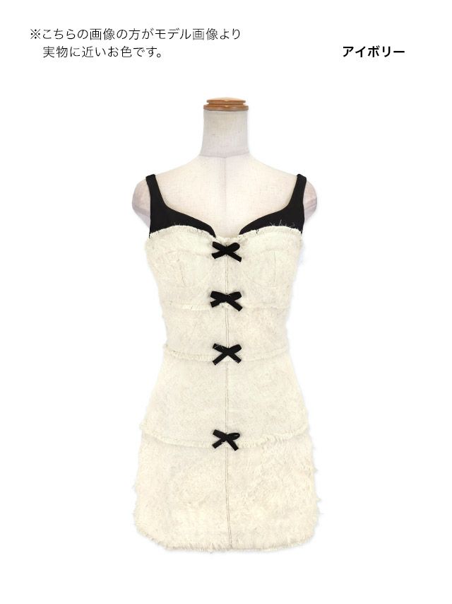 4. ガーリー キャミソール フリンジジャガードリボンモノトーンタイトミニドレス (Sサイズ/Mサイズ) (若林萌々/キャバドレス着用)