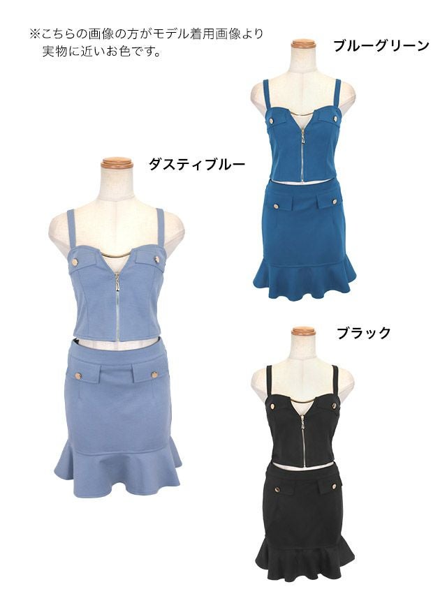 バストフロントシップセットアップキャミソール裾フリルタイトミニドレスのカラーバリエーション