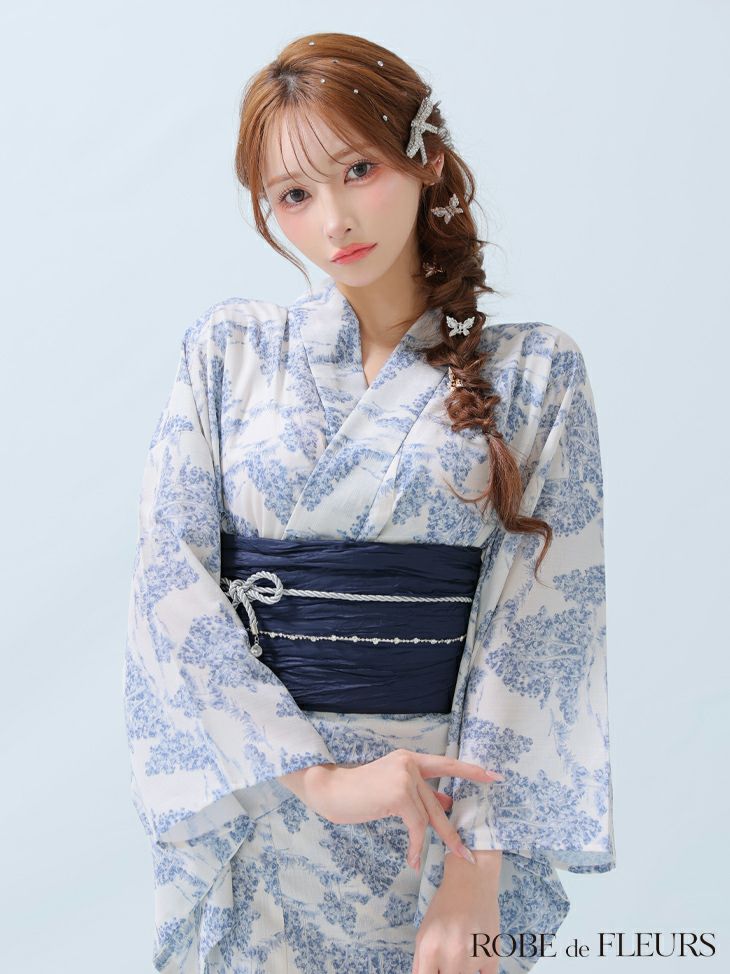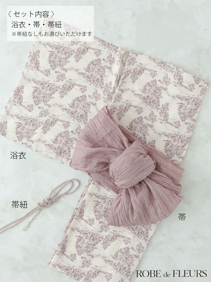 3. [ROBEdeFLEURS/ローブドフルール] [浴衣] 高級 フラワープリント 選べる2点or3セット (浴衣+帯+帯紐ありor帯紐なし)