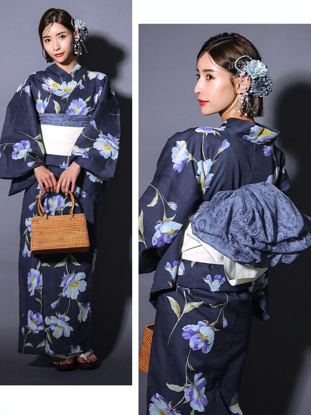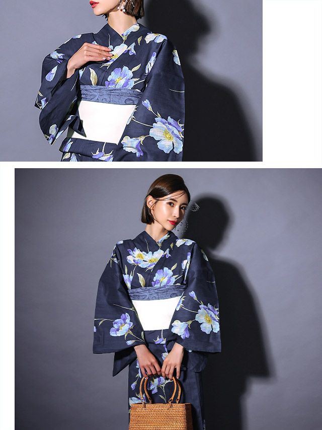 粋 濃紺地×油彩牡丹ゆかた3点セット ゆかた3点セット内容