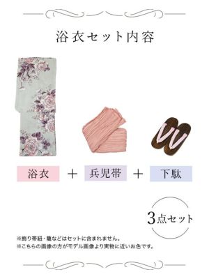 多くの浴衣は「浴衣+帯」または「浴衣+帯+下駄」の3点セットになっています。商品ごとにセット内容が異なるため、各ページの詳細をご確認ください。