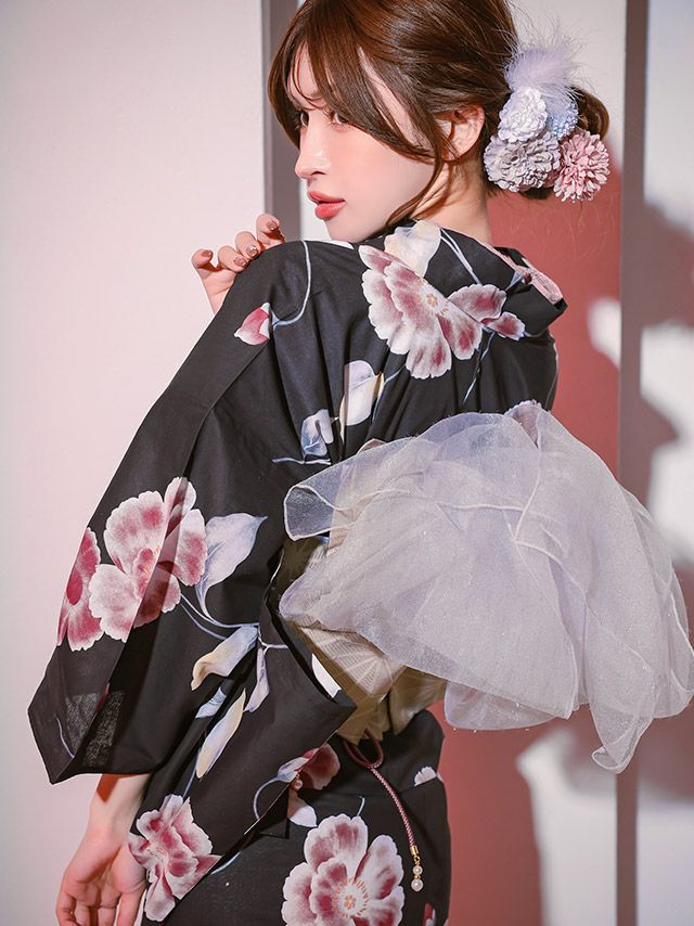 妖艶 黒地 グラデーション シャクナゲ セパレート ゆかた3点セットのイメージ画像4