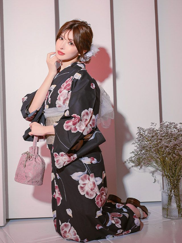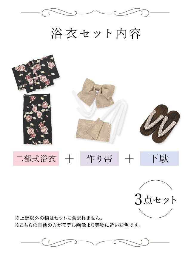 妖艶 黒地 グラデーション シャクナゲ セパレート ゆかた3点セットのセット内容