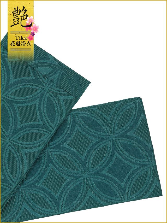 浴衣柄のアクセントになる帯は深緑を合わせることで