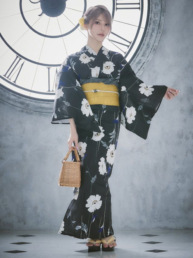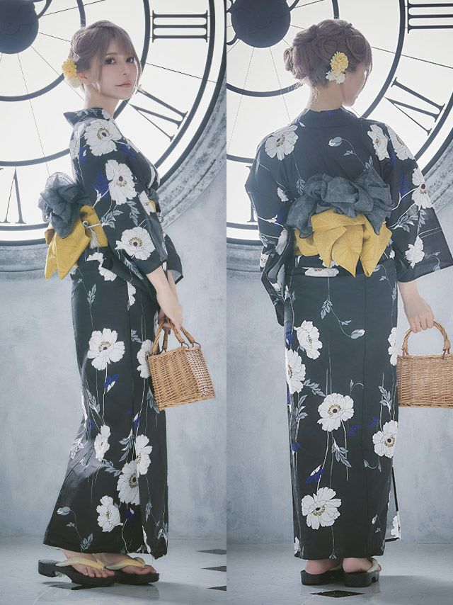 浴衣と帯のコントラストがとても美しく、