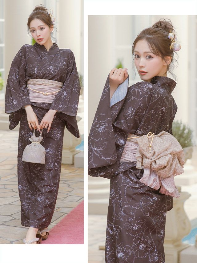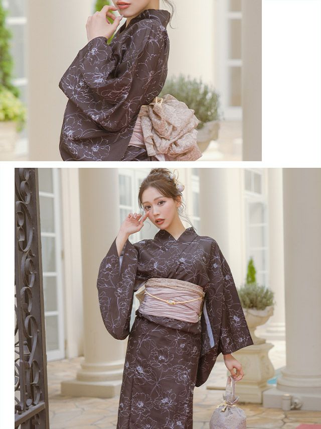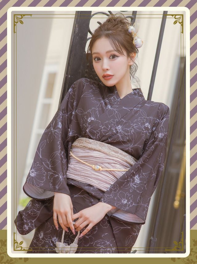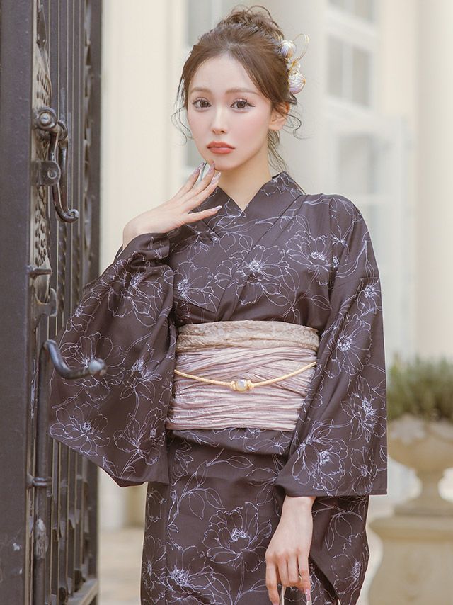 モノトーン線画フラワー ゆかた3点セットのイメージ画像1