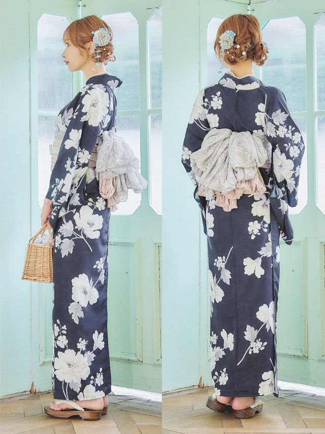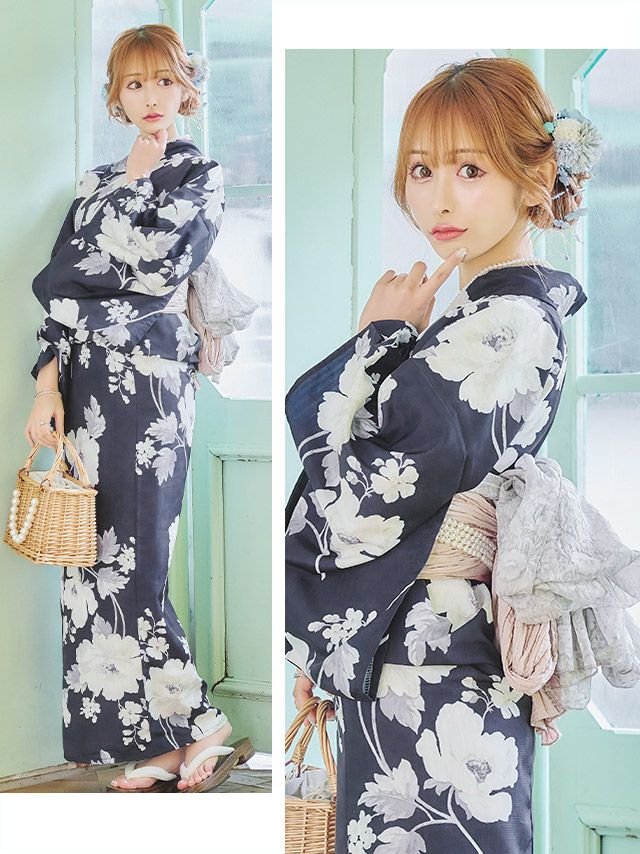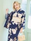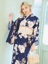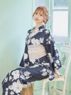 華やかアンティークフラワー ゆかた3点セットのセット内容 ダークネイビー/浦西ひかる着用