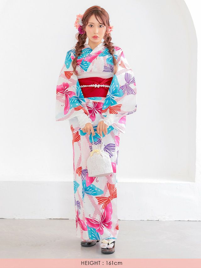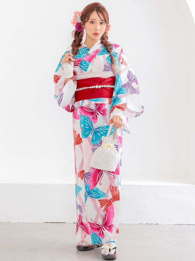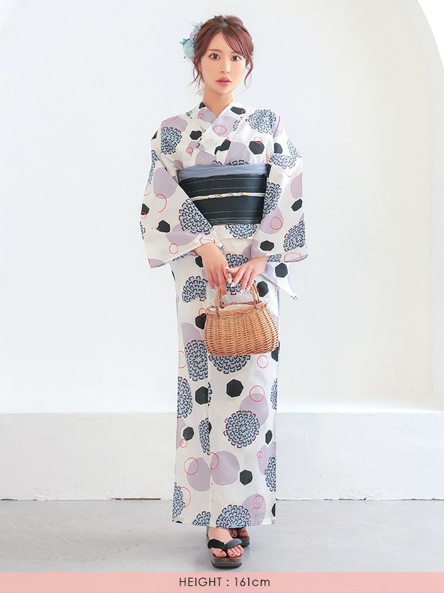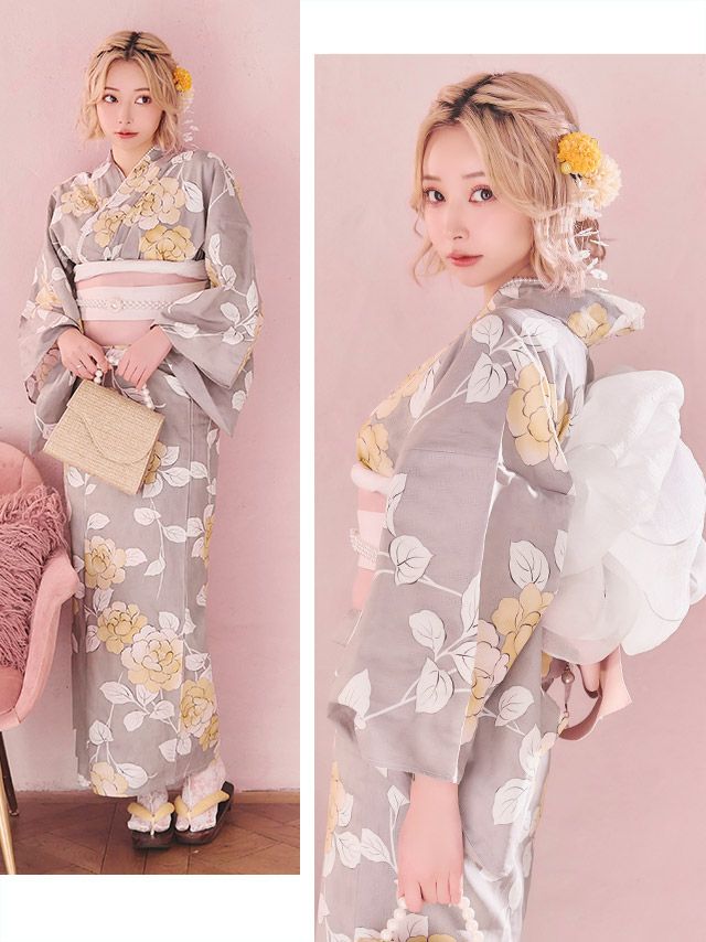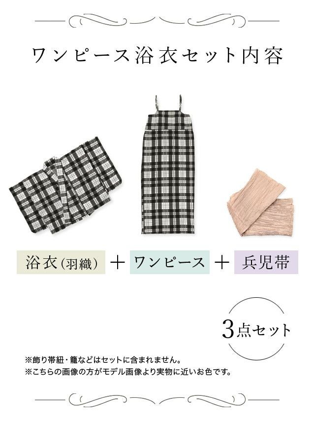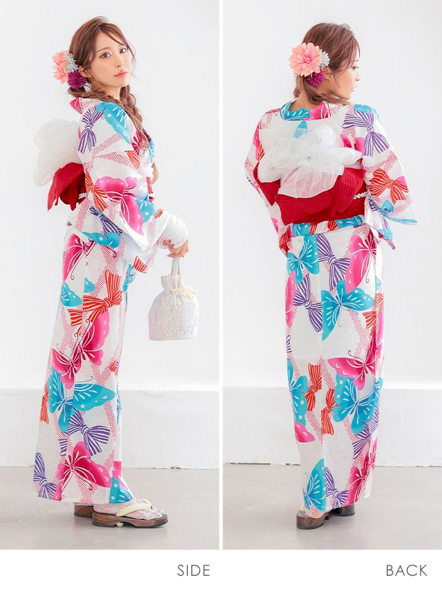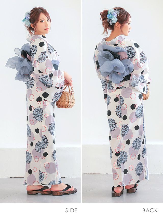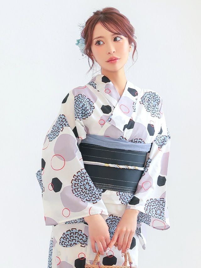 多くの浴衣は「浴衣+帯」または「浴衣+帯+下駄」の3点セットになっています。商品ごとにセット内容が異なるため、各ページの詳細をご確認ください。