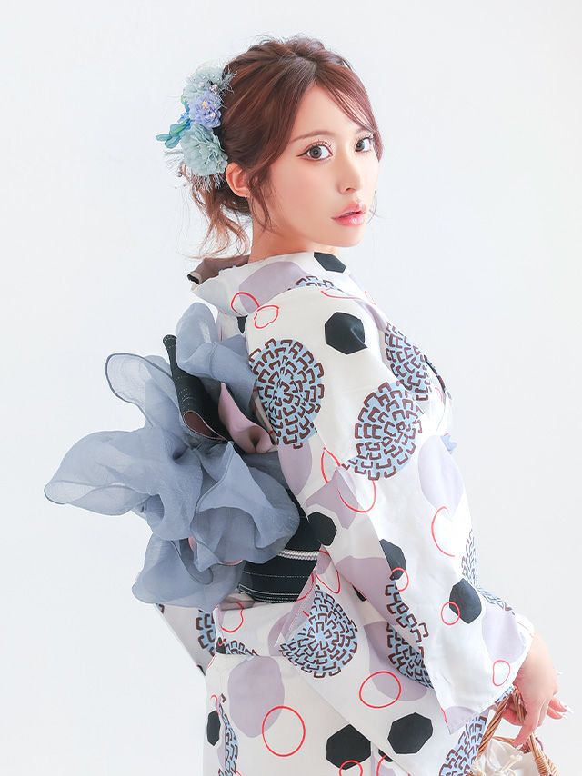 プチプラ 白色地 × レトロ モダン 和柄 ゆかた 2点セットのセット内容
