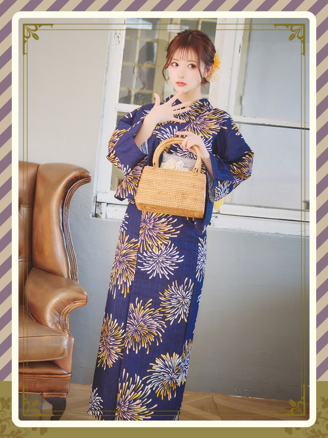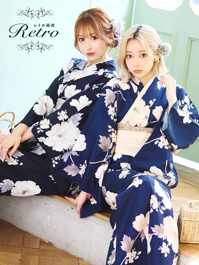 Tikaでは種類豊富なレトロ浴衣を多種多様に取り扱っております。 レトロ柄と言えば麻の葉や市松、着痩せ効果抜群なよろけ縞やストライプなど、昔にタイムスリップしたような古典柄が毎年大人気!! レトロ感は欲しいけど女の子らしい可愛さもしっかりアピールしたい方には、着るだけ華やかに魅せてくれる浴衣いっぱいに敷き詰められたお花柄、 特に目を惹くポップなカラーや柄、ひまわりなどのお花は明るく元気なイメージにしてくれます。 清涼感のある白地から、落ち着いた大人の雰囲気を演出してくれる紺地、かっこいい大人女性を演出する黒地まで、 柄は勿論ですが浴衣の色味でも見え方や印象もガラッと変わります。 浴衣姿のアクセントとなる帯は、着付けが苦手な方でも簡単に結べるのものから自由に帯アレンジ楽しみたい方まで、Tikaではどんな方でも浴衣姿を可愛くお洒落に演出していただけるように、お好みの帯を選ベる平帯、作り帯、兵児帯の3種類の帯をご用意。 勿論お気に入りの浴衣柄と帯に合う下駄まで、足元までしっかりレトロな雰囲気漂うようにトータルコーディネートさせていただきました。 どの浴衣を着ればいいか迷っている方は、お祭りや花火大会などのイベントにピッタリな流行りに囚われないレトロ浴衣がおすすめ♪ 周りと差をつける様々なレトロ浴衣をTikaでは沢山ご用意しておりますので、是非お気に入りの3点セットを見つけてくださいね♪