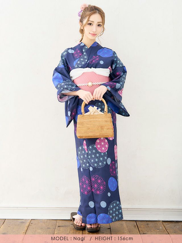 多くの浴衣は「浴衣+帯」または「浴衣+帯+下駄」の3点セットになっています。商品ごとにセット内容が異なるため、各ページの詳細をご確認ください。
