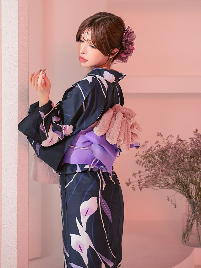妖艶 濃紺 白 菖蒲 ゆかた3点セット内容