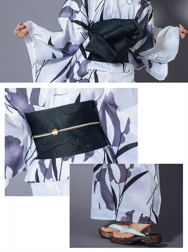 3. [浴衣] 選べる帯 粋 水墨モノトーン 3点セット (ゆかた・平帯or作り帯・下駄)