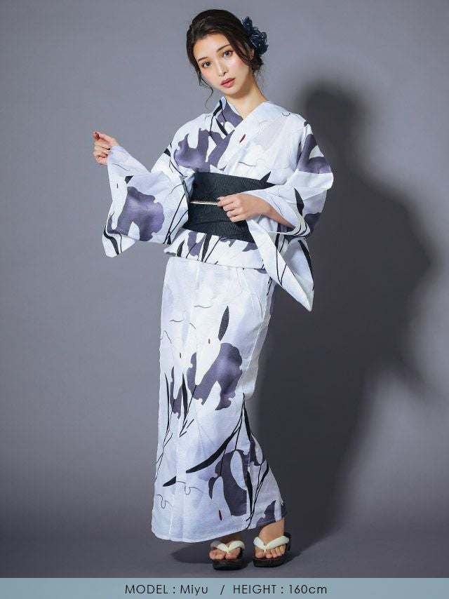 5. [浴衣] 選べる帯 粋 水墨モノトーン 3点セット (ゆかた・平帯or作り帯・下駄)