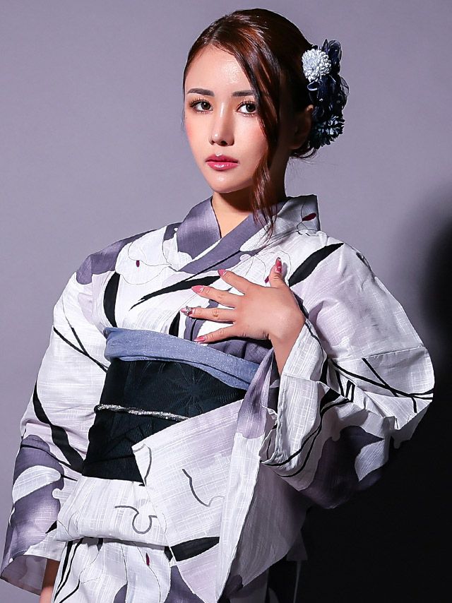 粋 水墨モノトーンゆかた3点セットのイメージアップ