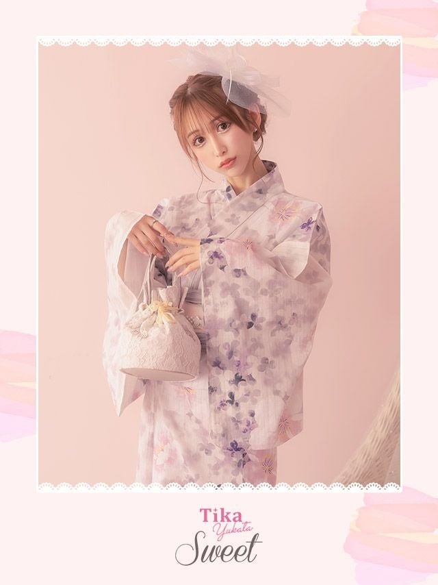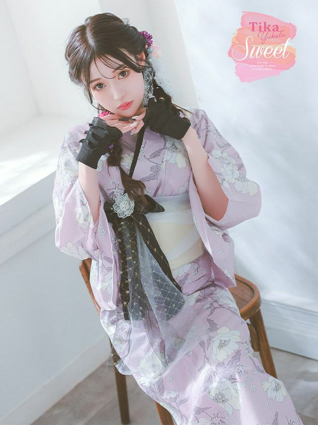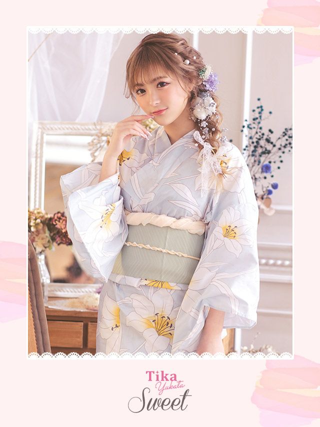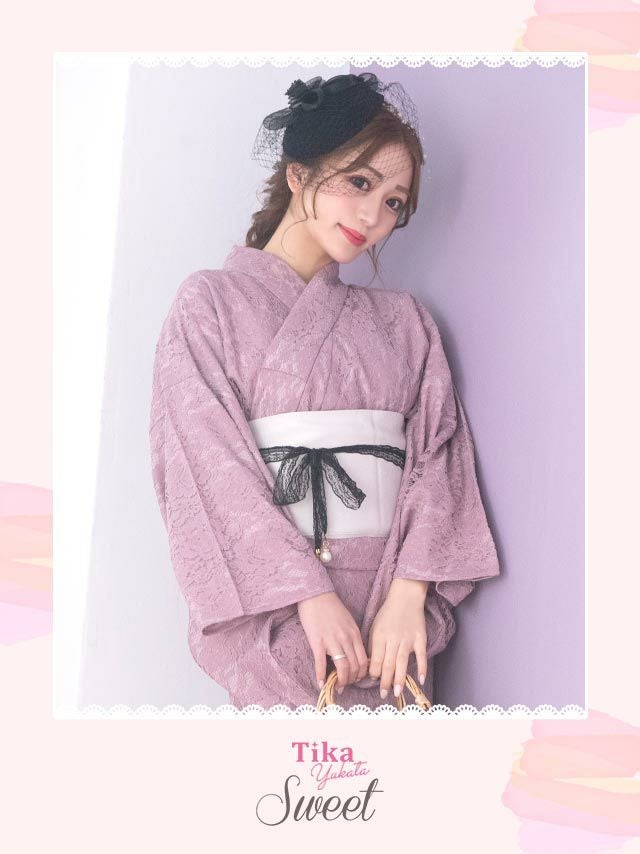 和装もお洋服みたいに誰よりも可愛くお洒落に見せたい!!そんな方におすすめなのが、ガーリーな雰囲気を漂わせてくれるTikaのスウィート浴衣。 淡いカラーでふんわり優しく、着るだけで甘々な可愛さ炸裂!! Tikaでは高品質の浴衣、選べる帯、下駄の豪華3点セットでご用意しております。 どこから見てもとびっきり可愛く演出できるTikaのスウィート浴衣を是非チェックして見てくださいね♪ ガーリーな甘さたっぷりなスウィート浴衣を種類豊富にご用意しております。 特に和装には珍しい個性的なワンランク上のレース浴衣が大人気。 着るだけで人と差をつけて、気分も女子力も爆上げしてくれること間違いなし♪ 華やかな浴衣柄に、さらに可愛さを増す帯も絶妙な色味とデザインをチョイスさせていただきました。 浴衣と同系色の帯や女の子らしいピンクの帯を合わせるだけで、浴衣姿もふんわりかわいらしく着こなすことができます。 勿論、浴衣と帯にピッタリな下駄もセット!! お気に入りのスウィート浴衣をさらに可愛く引き立ててくれる小物選びもとっても大事!! 小物次第でよりガーリーな雰囲気を演出し、格段に浴衣姿を可愛くしてくれますよ。 モデル着用画像のトレンドをおさえた小物使いを是非参考してみてくださいね♪
