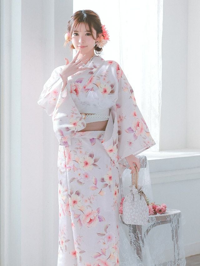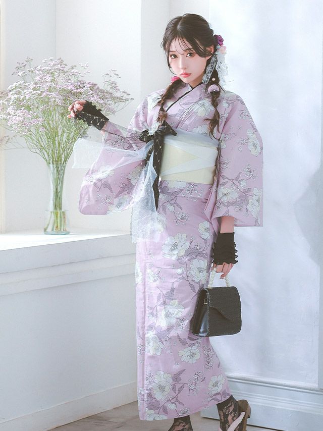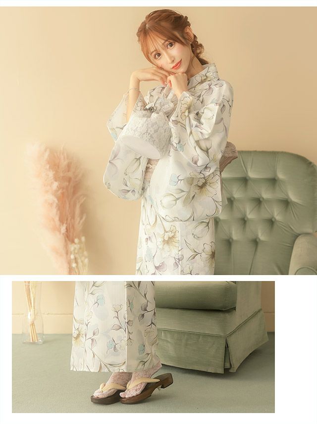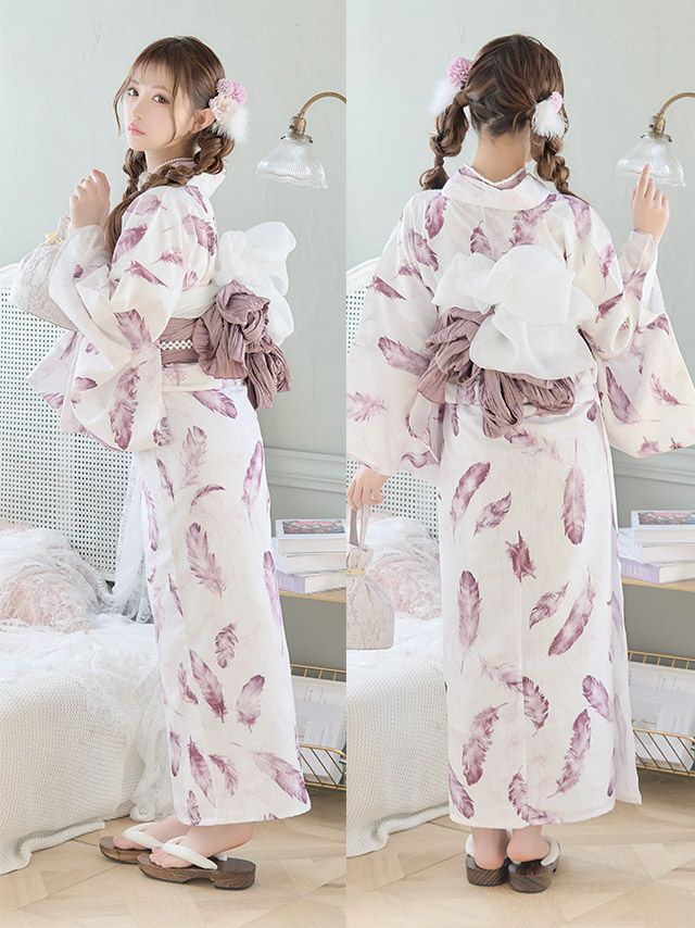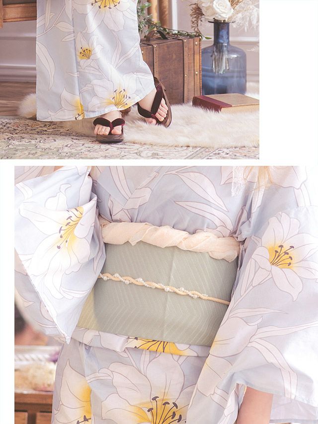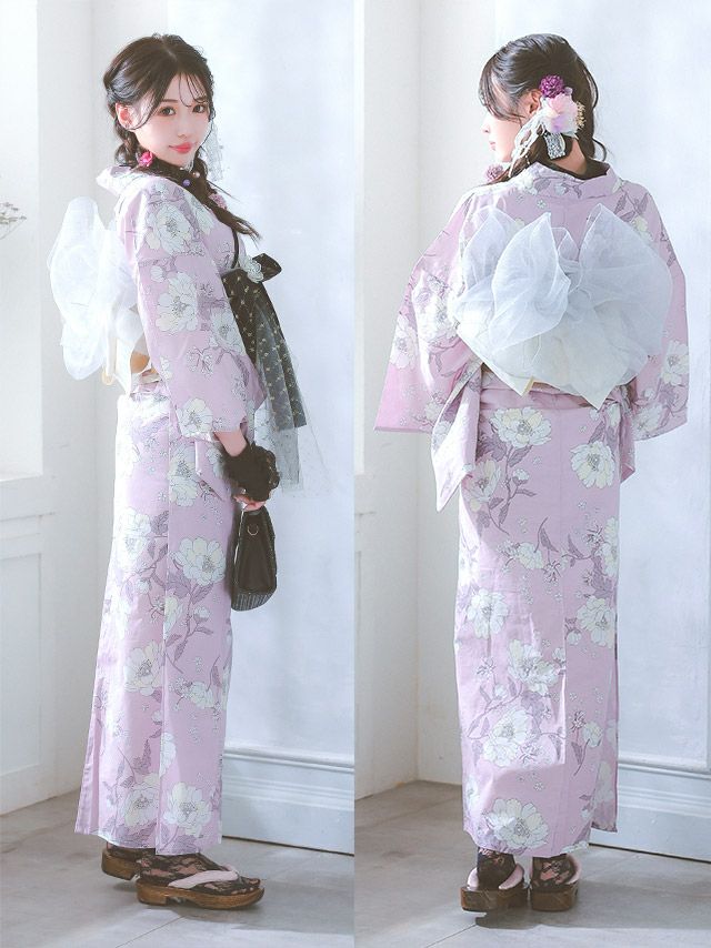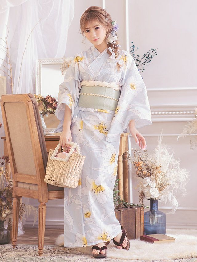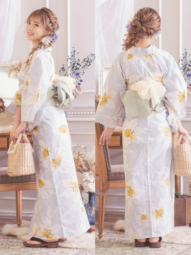多くの浴衣は「浴衣+帯」または「浴衣+帯+下駄」の3点セットになっています。商品ごとにセット内容が異なるため、各ページの詳細をご確認ください。