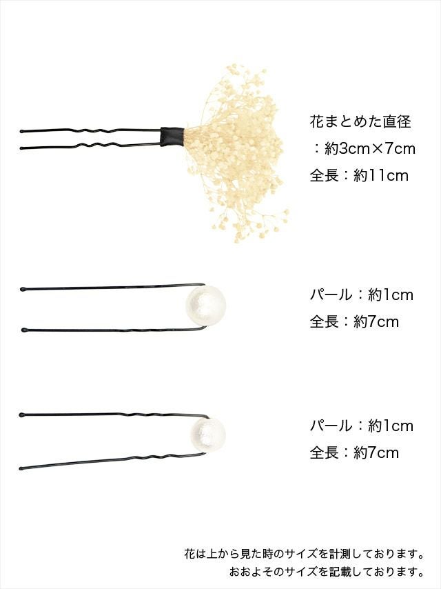 かすみ草×パールヘアアクセサリー3点セットのサイズ表1