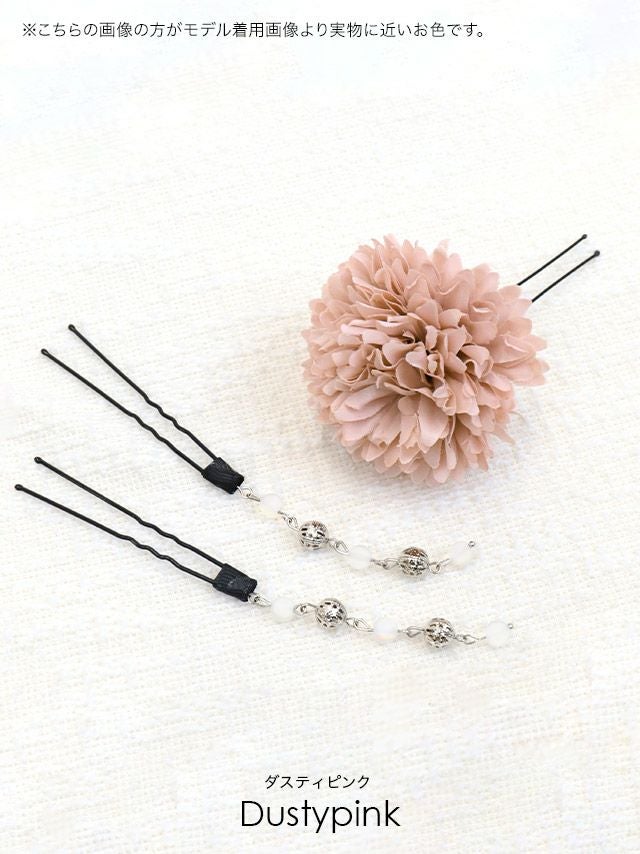 5. [浴衣小物] 髪飾り ビーズチャーム付きニュアンスポンポンマム浴衣ヘアアクセサリー3点セット(ダスティピンク/パープル/ミントグレー/スモークブルー)