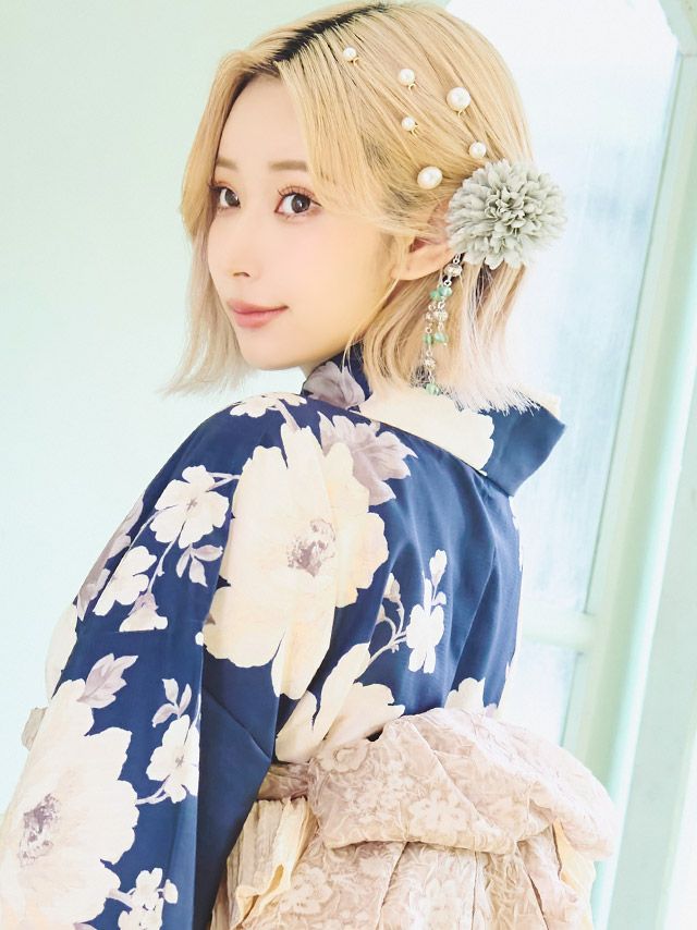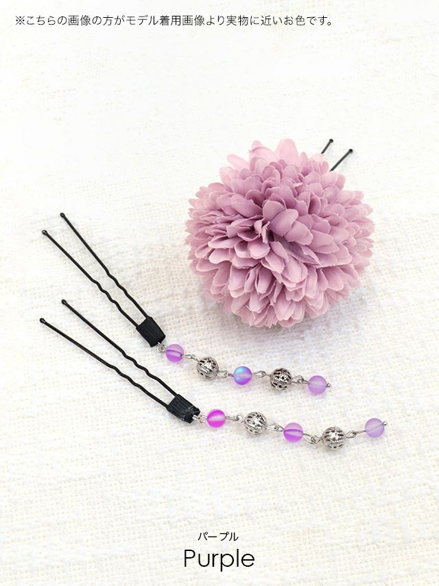 トレンドカラーのお花がお洒落映え◎♪ [浴衣小物] 髪飾り ビーズチャーム付きニュアンスポンポンマム浴衣ヘアアクセサリー3点セット(ダスティピンク/パープル/ミントグレー/スモークブルー)