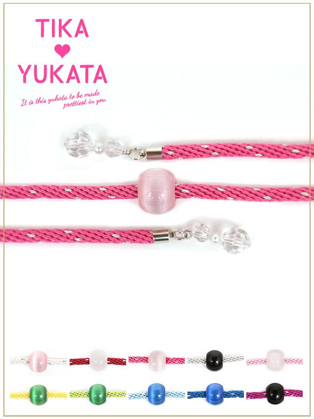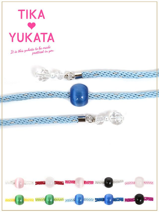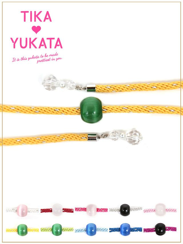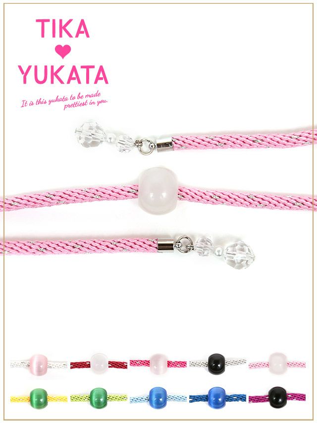浴衣のワンポイントに♪ [浴衣小物] とんぼ玉クリスタルビジュー付き飾り帯紐 10色展開 (ホワイト/イエロー/イエローグリーン/ライトブルー/ブルー/パープル/レッド/ピンク/ライトピンク/シルバー)