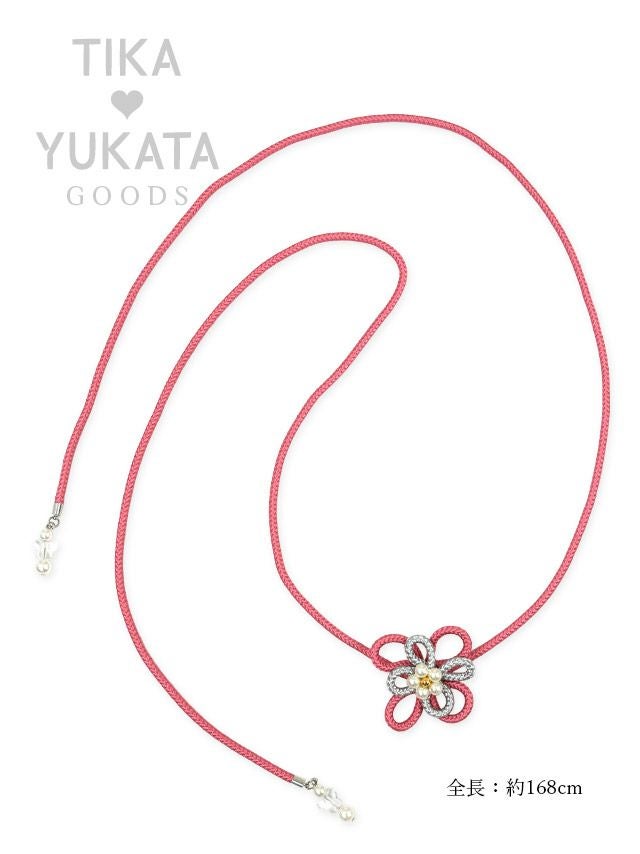 4. [浴衣小物] パール付きフラワー飾り帯紐 (ホワイト×シルバー/ピンク/パープル)