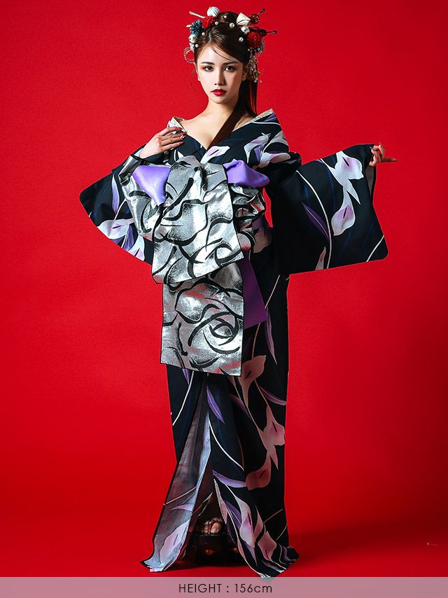 花魁 濃紺×菖蒲の花 2way おいらん浴衣5点セット