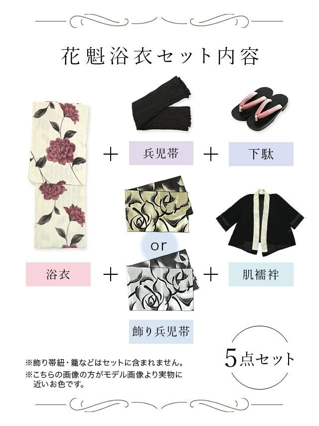 花魁 ベージュ地×アンティークフラワー 2way おいらん浴衣5点セットのセット内容