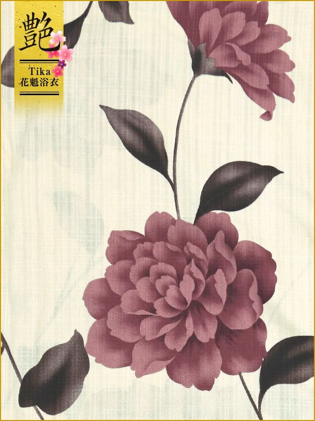 花魁 ベージュ地×アンティークフラワー 2way おいらん浴衣5点セットの生地アップ画像