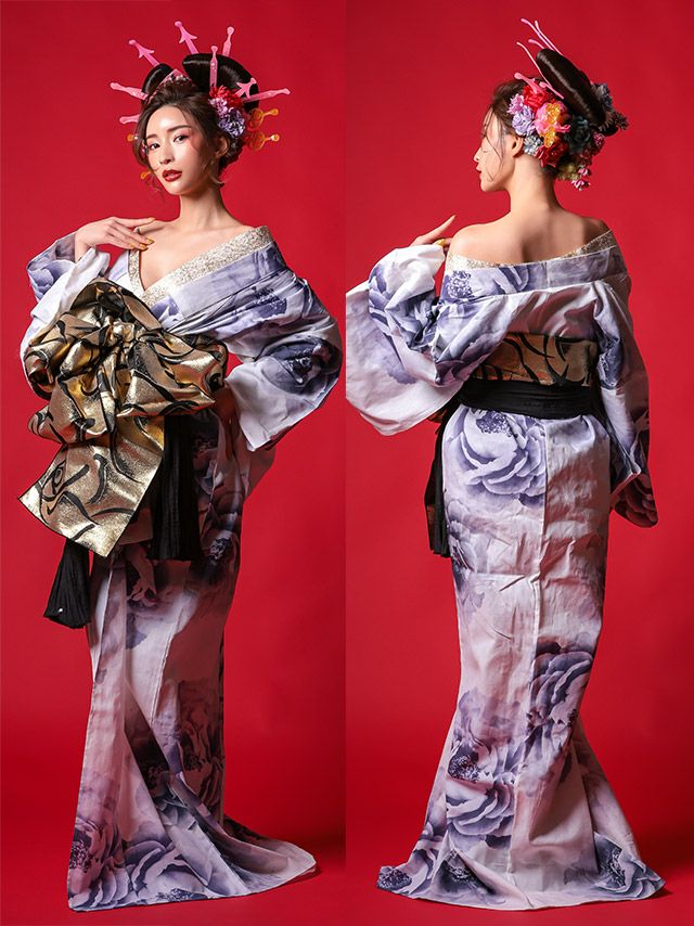 花魁 白地×淡彩牡丹2way おいらん浴衣5点セットの2wayの例1画像